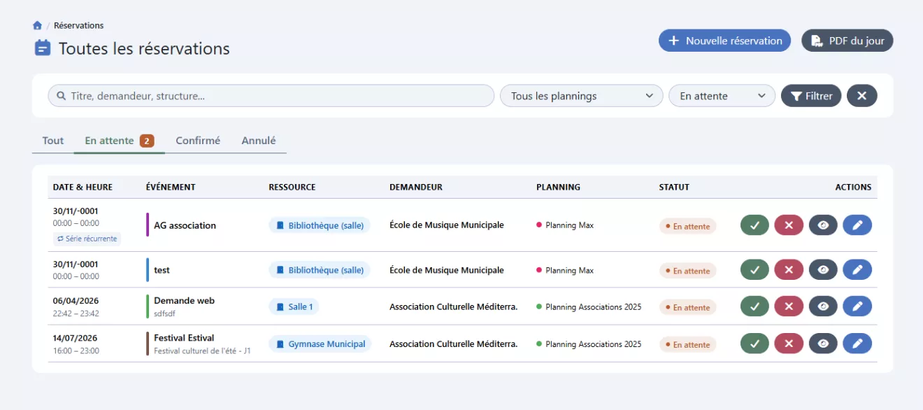 Visualisez et filtrez vos réservations, en un clic