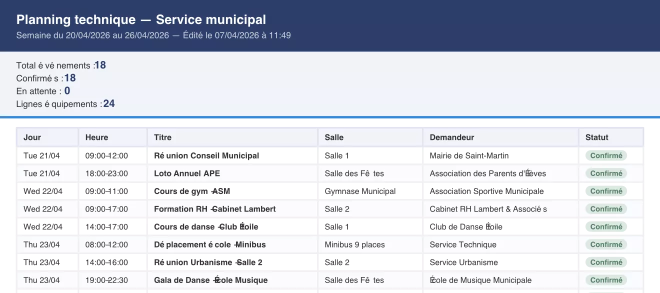 - Agenda centralisé des salles communales