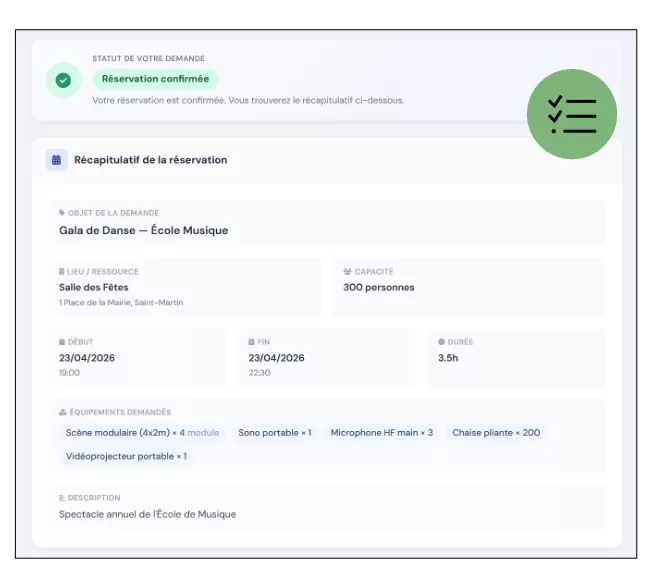 Élus, agents et usagers : facilitez chaque étape de la réservation et de la gestion des équipements, avec des outils adaptés à chaque usage.